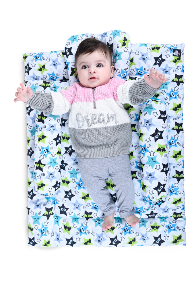 - πΌMATERIAL: The baby bedding/ gaddi set is made with breathable & soft material to give safe comfy time to your baby. High quality cotton - soft, safe and skin friendly fabric, filled with soft recron inside which allows baby to feel comfortable and can sleep peacefully.