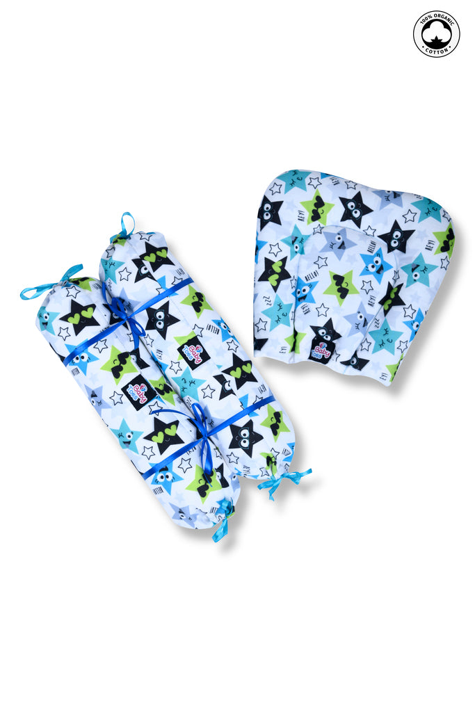 - πΌPILLOW & BOLSTER : Baby pillow is highly recommended to use for newborn as it helps to keep your baby head in round shape and give a proper shape to your baby's head. 2 side bolster or lots helps for side support for your baby. It acts as safety barrier for them.